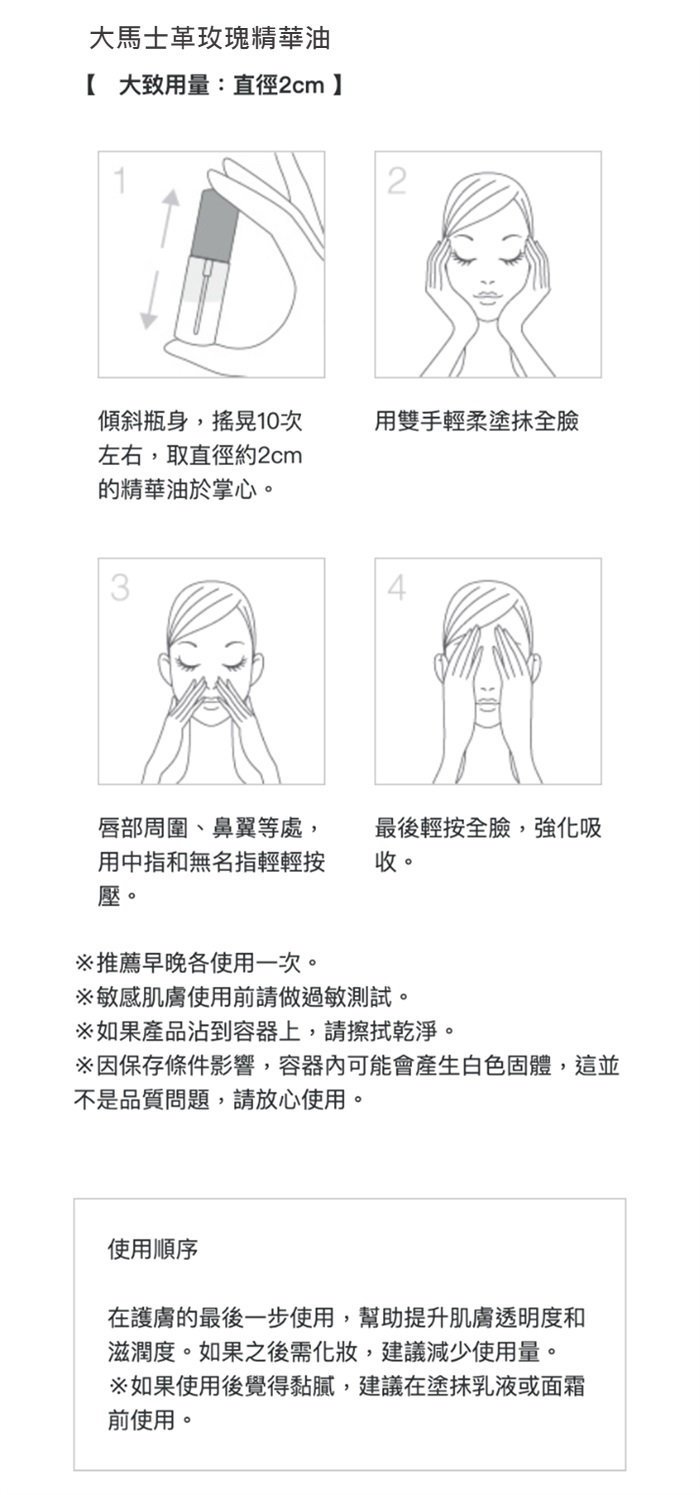 ★大馬士革玫瑰精華油,舒緩精神、修復肌膚屏障功能。