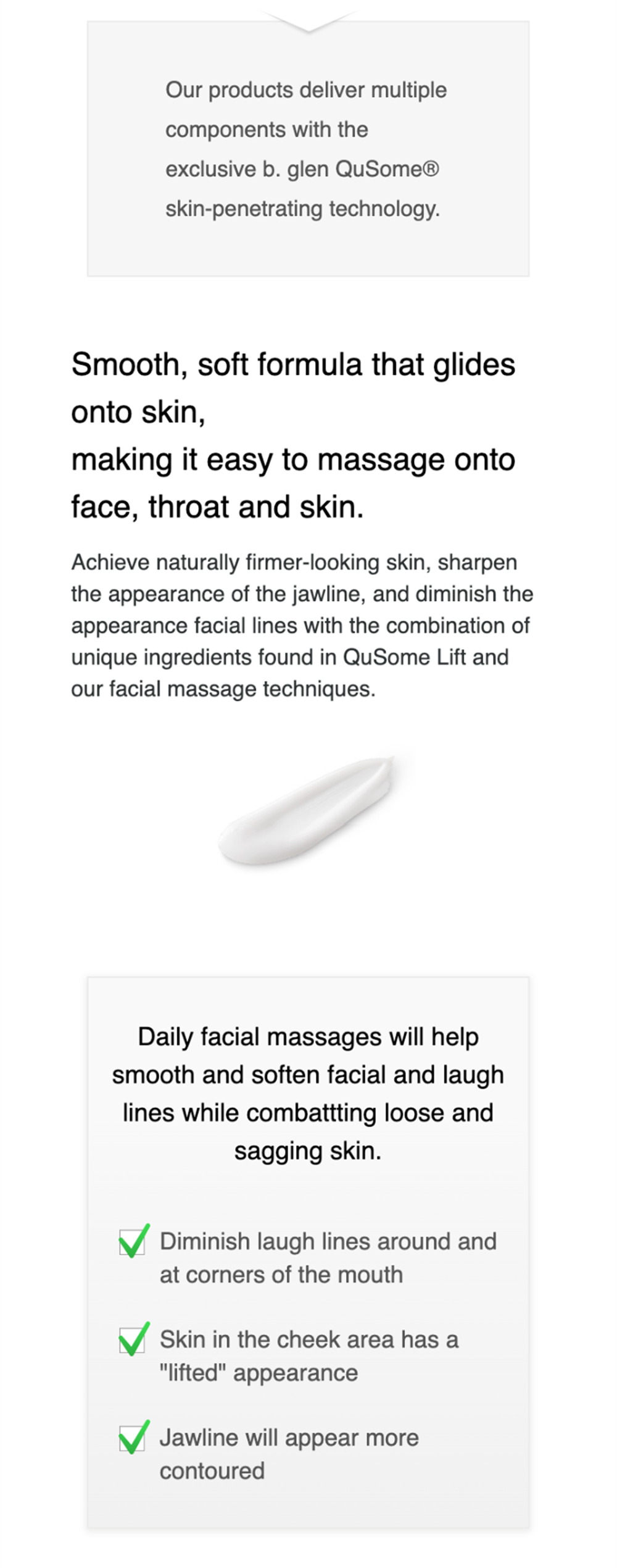 Soften the appearance of sagging skin and laugh lines. Enhance appearance of contours with daily care and massage.